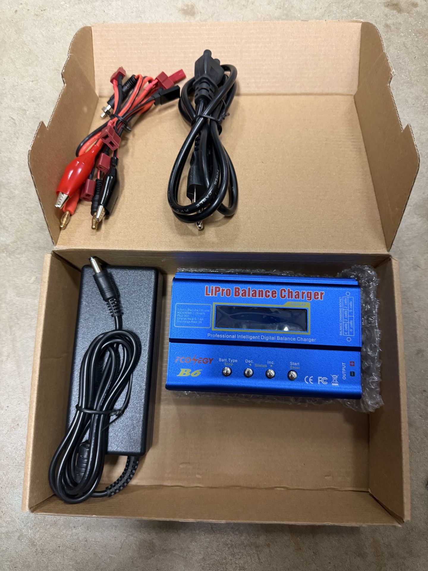 New/open box Multiple Battery Compatibility FCONEGY 80W 6A B6 charger can charge a variety of rechargeable batteries, including NiCd/NiMH batteries, Li-ion /LiPo batteries(1S-6S), LiFe batteries, LiHV batteries and Pb batteries. This is a multifunctional charger to solve your charging troubles, you only need to select the correct battery type when charging, It is very convenient and easy to use.
