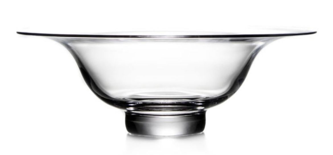 The Celebration Bowl has a strong, tapered base rising to a wide, flared rim. Handmade by Simon Pearce glassblowers using centuries-old techniques. 11½″ x 3⅛″, 24 ounces