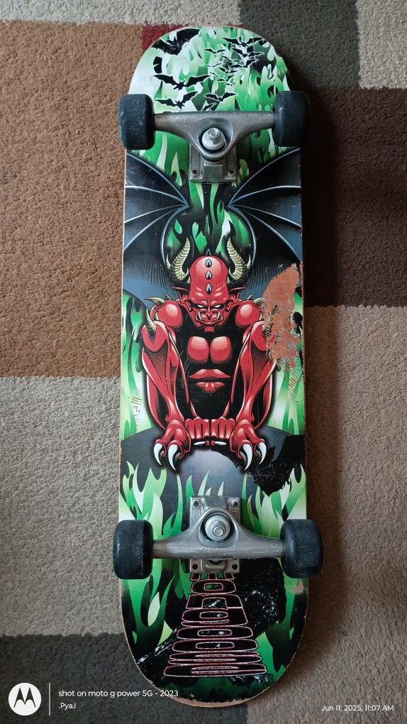 In excellent pre-owned condition with wear (see pics). Pick up in Bremerton! Get ready to ride back in time with this vintage 90's skateboard from the iconic brand Mongoose. This skateboard features Mongoose trucks and wheels, along with a devil-themed design that will transport you straight to the 90s skateboarding scene. This board is perfect for collectors or those looking for a retro addition to their collection. The Tony Hawk-inspired design will make you feel like a pro, even if you're just cruising around the neighborhood. Whether you're a seasoned skater or just starting out, this Mongoose skateboard is sure to turn heads and provide a smooth ride.