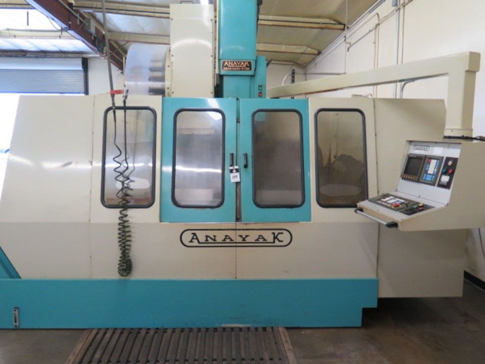 1997 Anayak “Anak-Matic-9 Vertical Machining Center Fanuc Series 0-m Controls, 20-Station ATC, BT-50 Taper Spindle, 21” x 51” Table, Chip Conveyor, Coolant