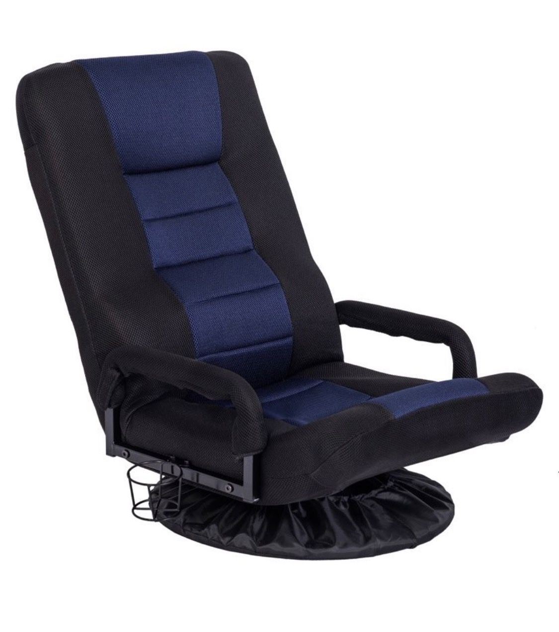 WAYTRIM 360-Degree Swivel Gaming Floor Chair with Armrest Handles, 5-Positions Foldable Adjustable Backrest for Adults Teens - Black/Navy
