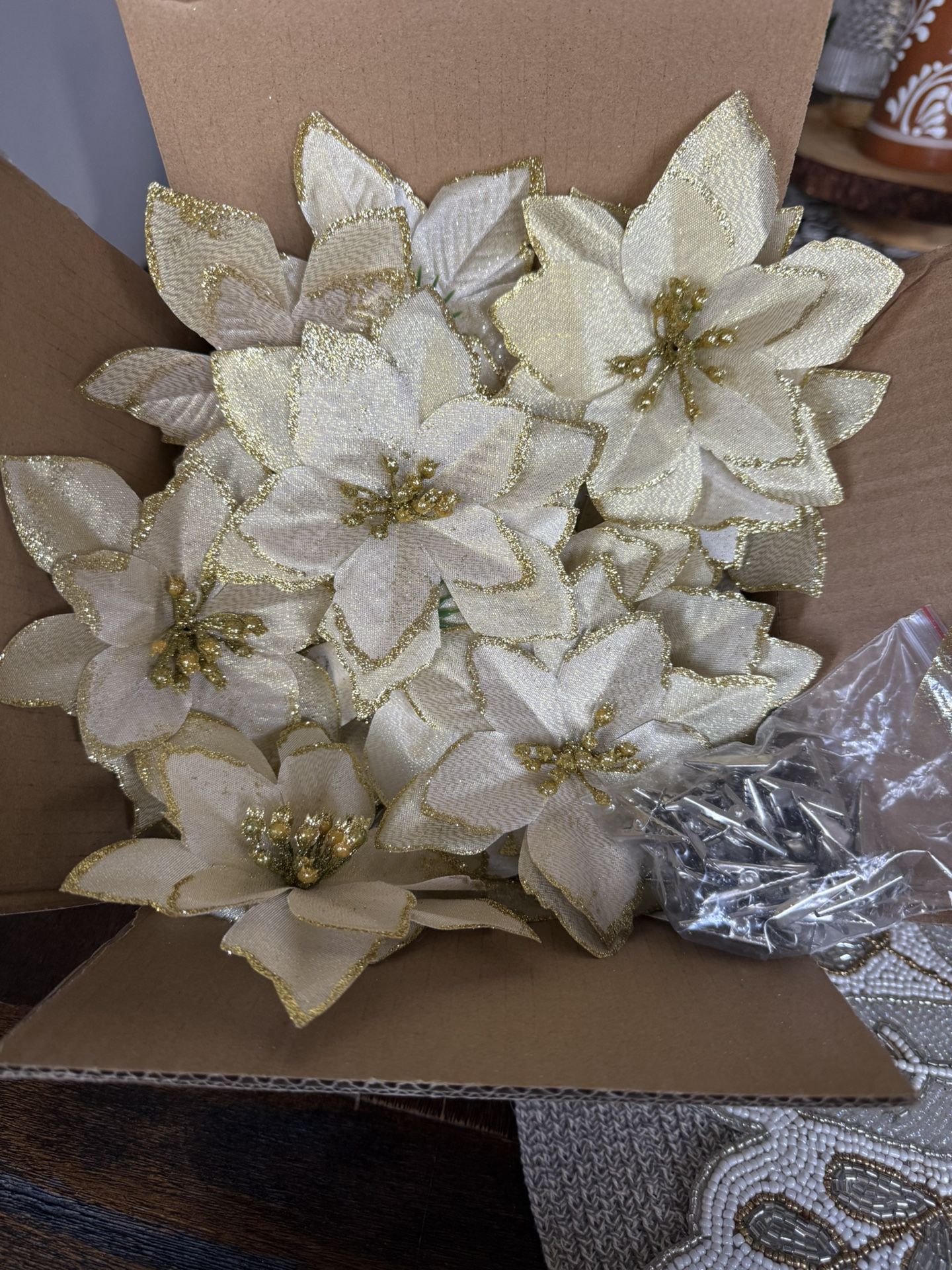 2 Boxes Of Christmas Artificial Flower Ornaments