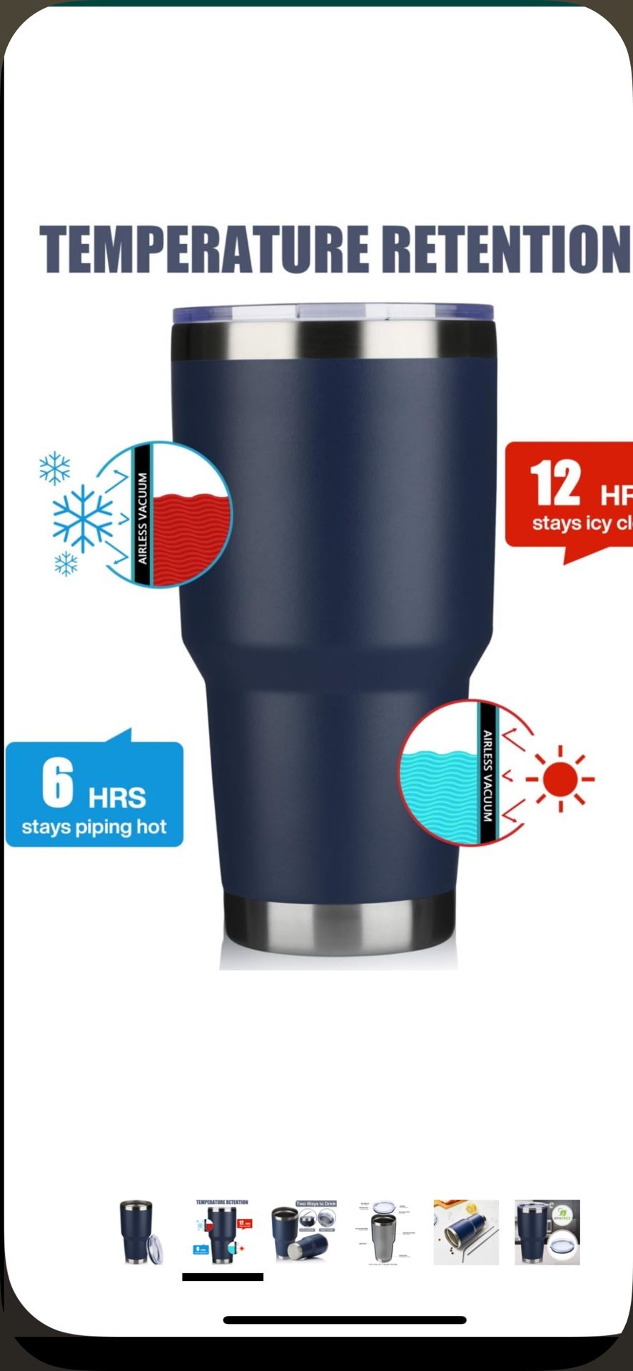 30oz Tumbler Double Wall Vacuum Insulated Travel Mug, Stainless Steel Tumbler with Lid, Durable Powder Coated Insulated Coffee Cup for Cold & Hot Drinks (Navy,1 PACK)