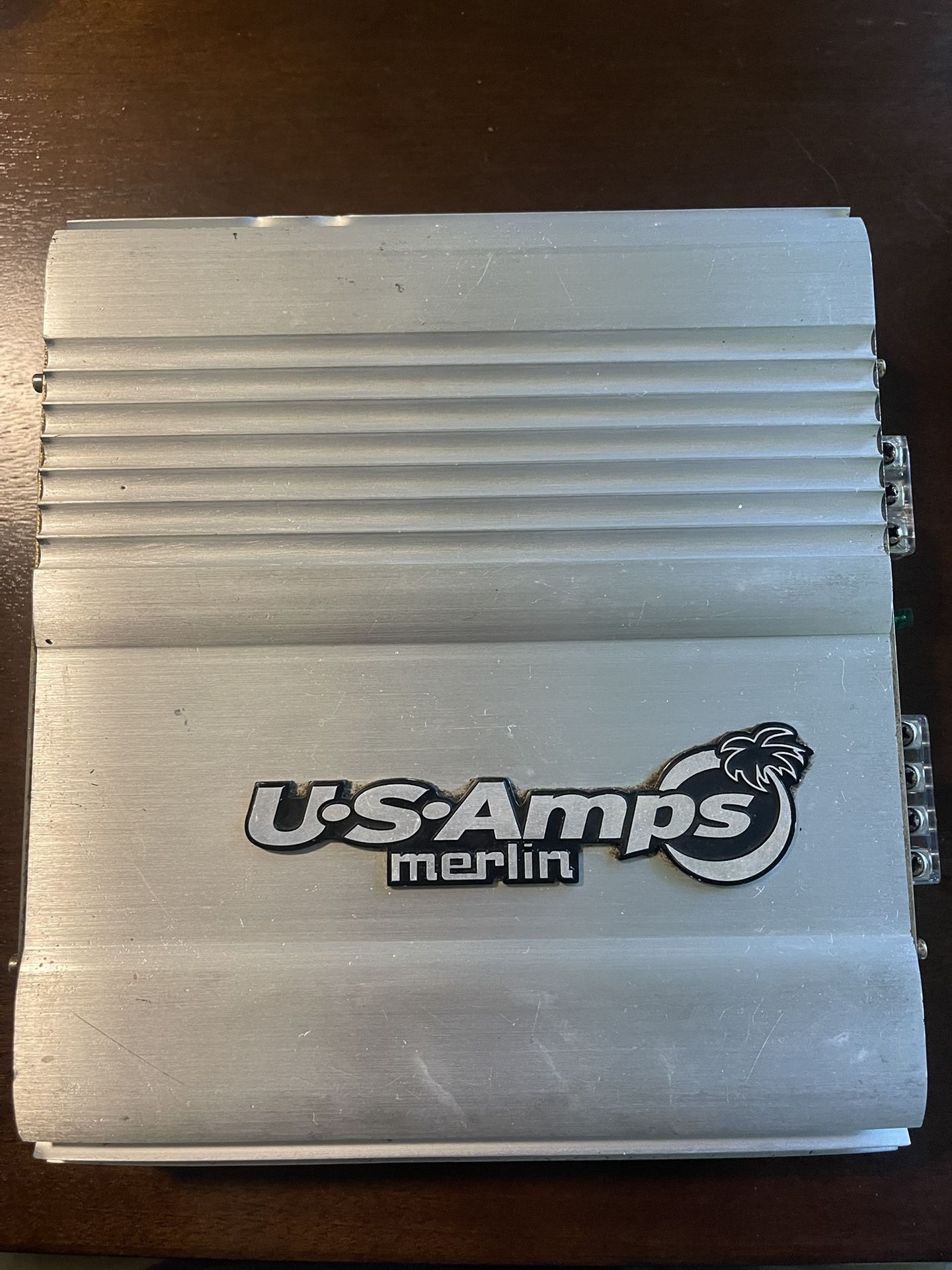US Amp Merlin series. Used with some wear and tear on it. 75W x 2 @ 4O 100W x 2 @ 2O 200W x 1 @ 4O mono
