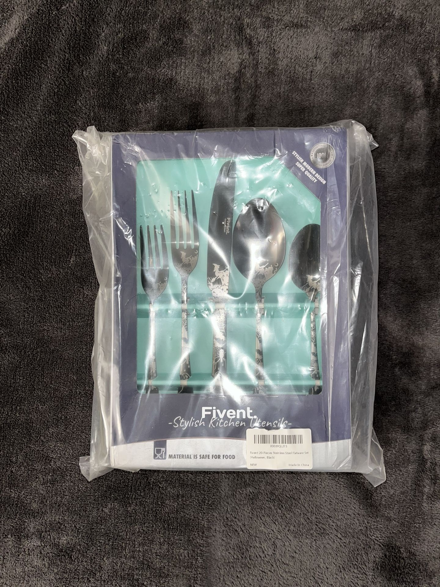 Full set of utensils but Halloween themed Dishwasher safe All black with printed Halloween design Never been used Still in the packaging and box