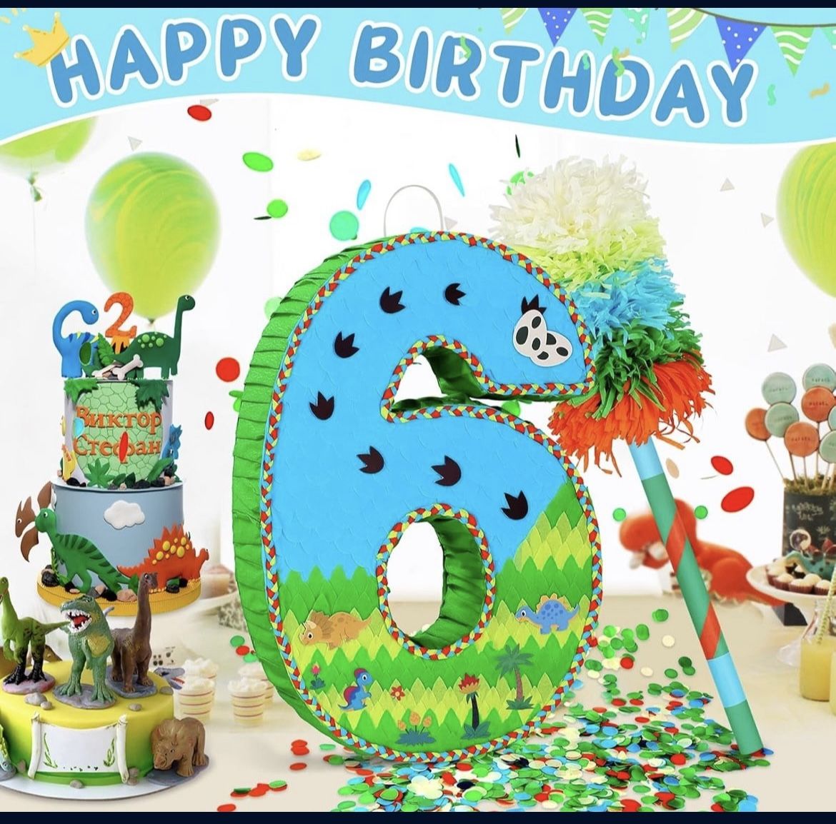 Number 6 Pinata for Birthday Party Decorations, Jungle Dinosaur Piñata Games Toy (6th)