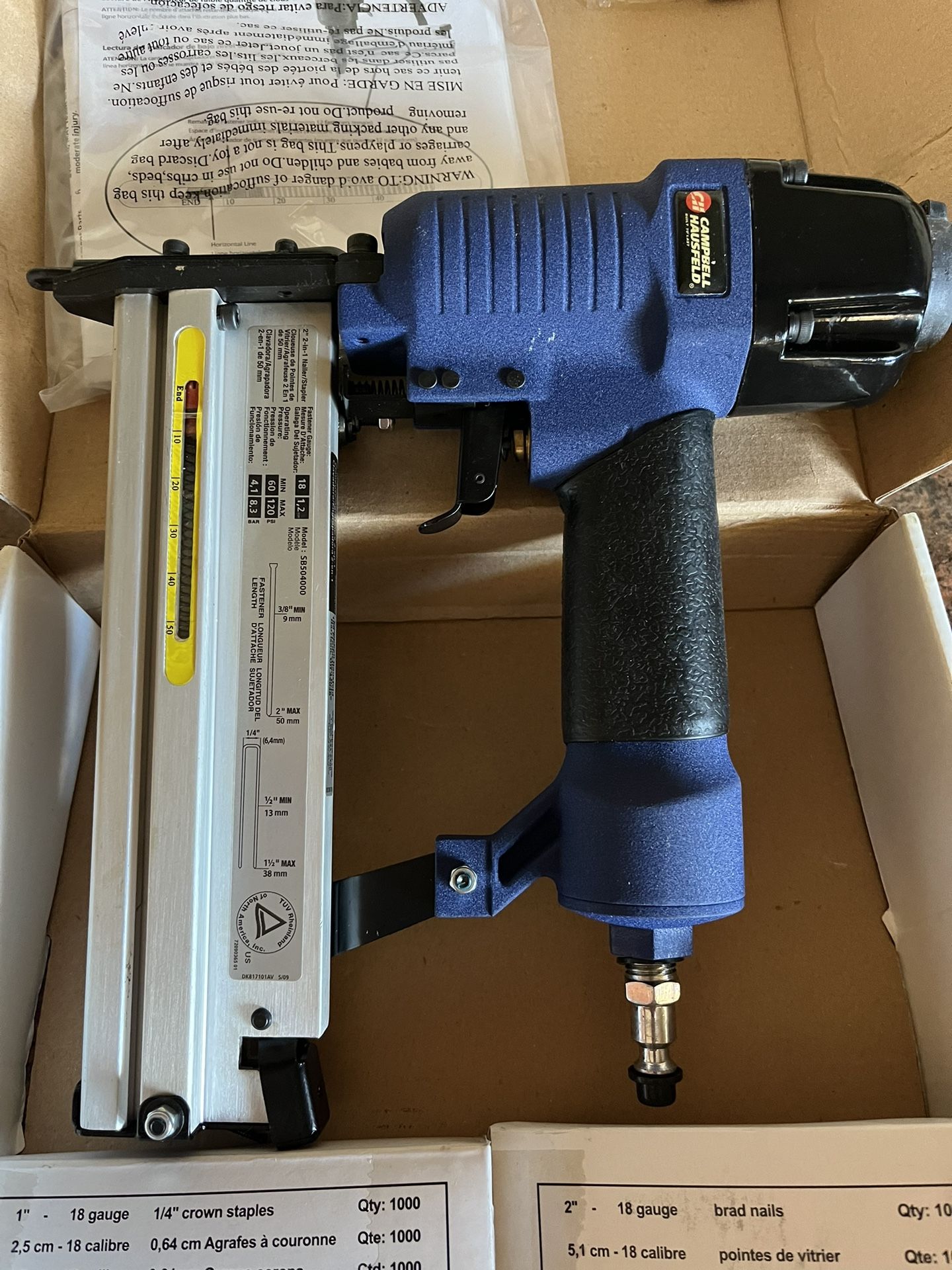 NEW, IN BOX, UNUSED - CAMPBELL HAUSFELD 2" 2-in 1 BRAD NAILER/STAPLER KIT. MODEL SB504000. Asking $45 / OBO