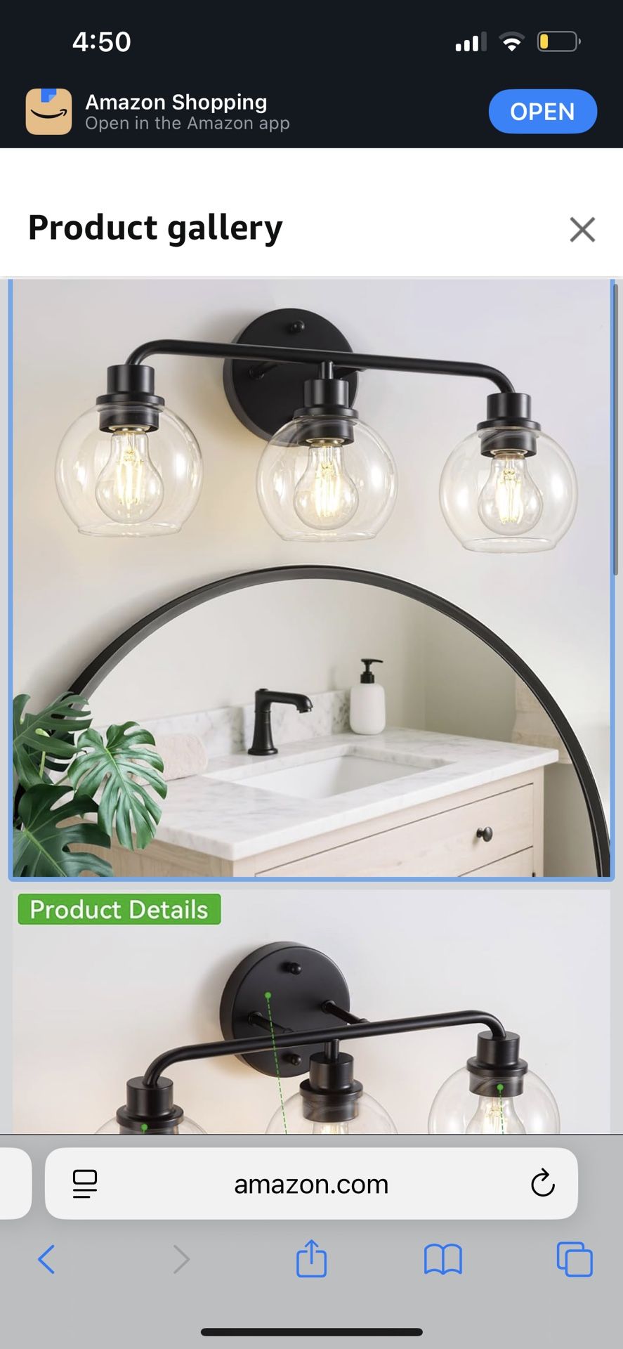 New in box black vanity light. We ended up using a different light and forgot to return this one. Light bulbs not included.