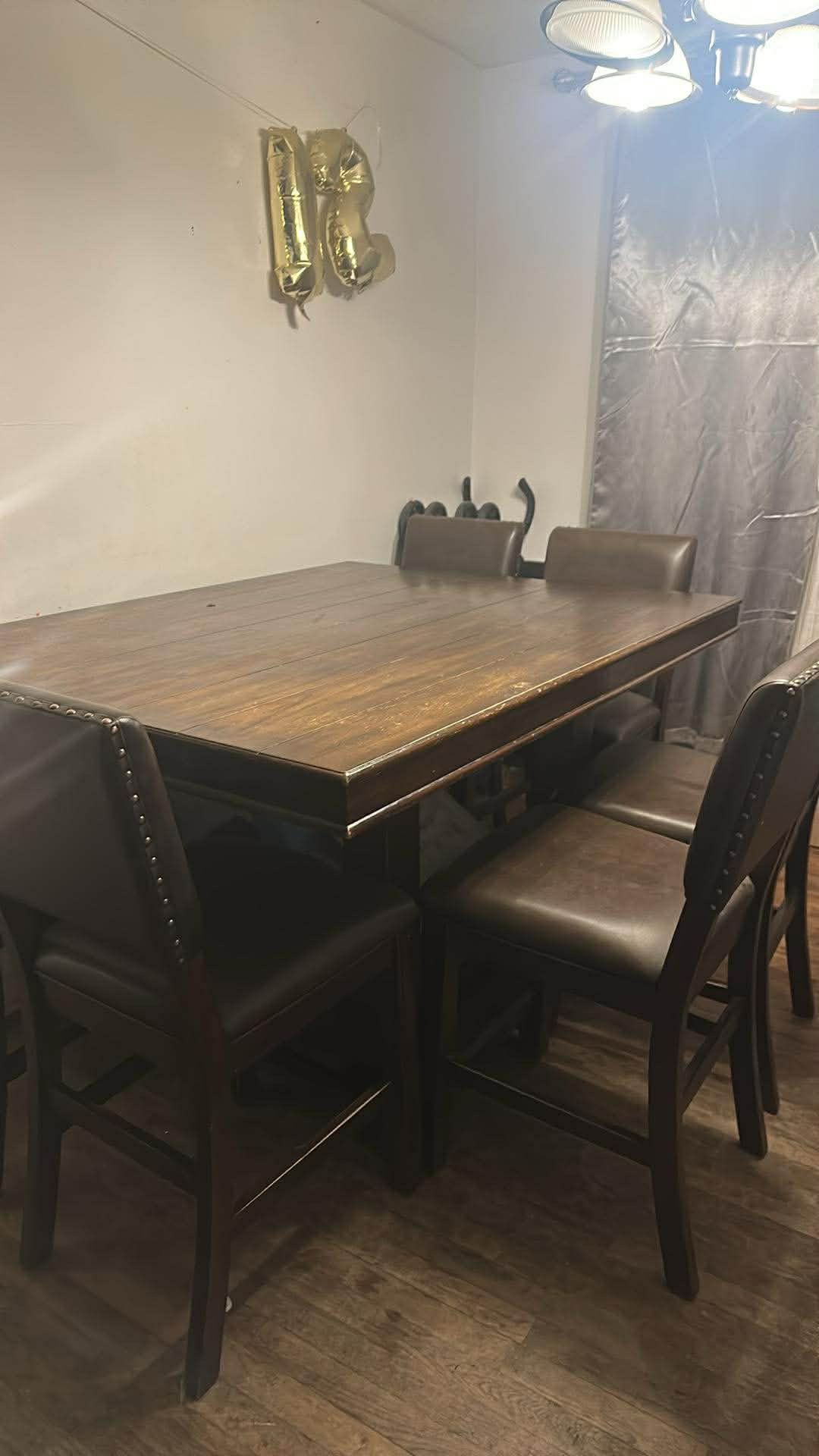 Tall table extends 8 chairs
