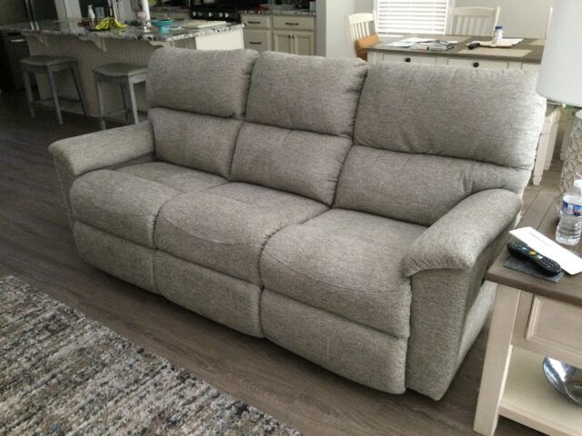 Gray La Z Boy couch. Only a few months old. Both end seats recline back. Dimensions: 41" H X 84"' W X 40" D Purchased from my parents, but want a different color. Proof of date of purchase available.