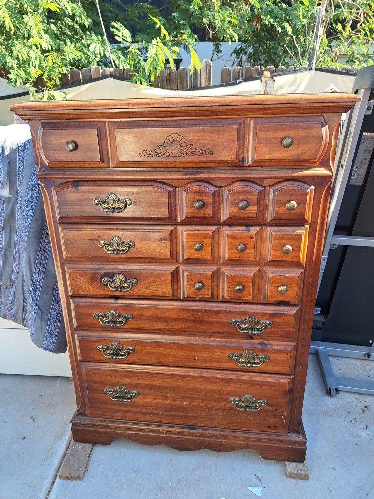 Solid wood tall dresser 3 big drawers and 2 small ones. Great condition nothing broken minor. Small scratches from normal use. Can deliver for a fee or pick up in Mesa Main St and Dobson rd