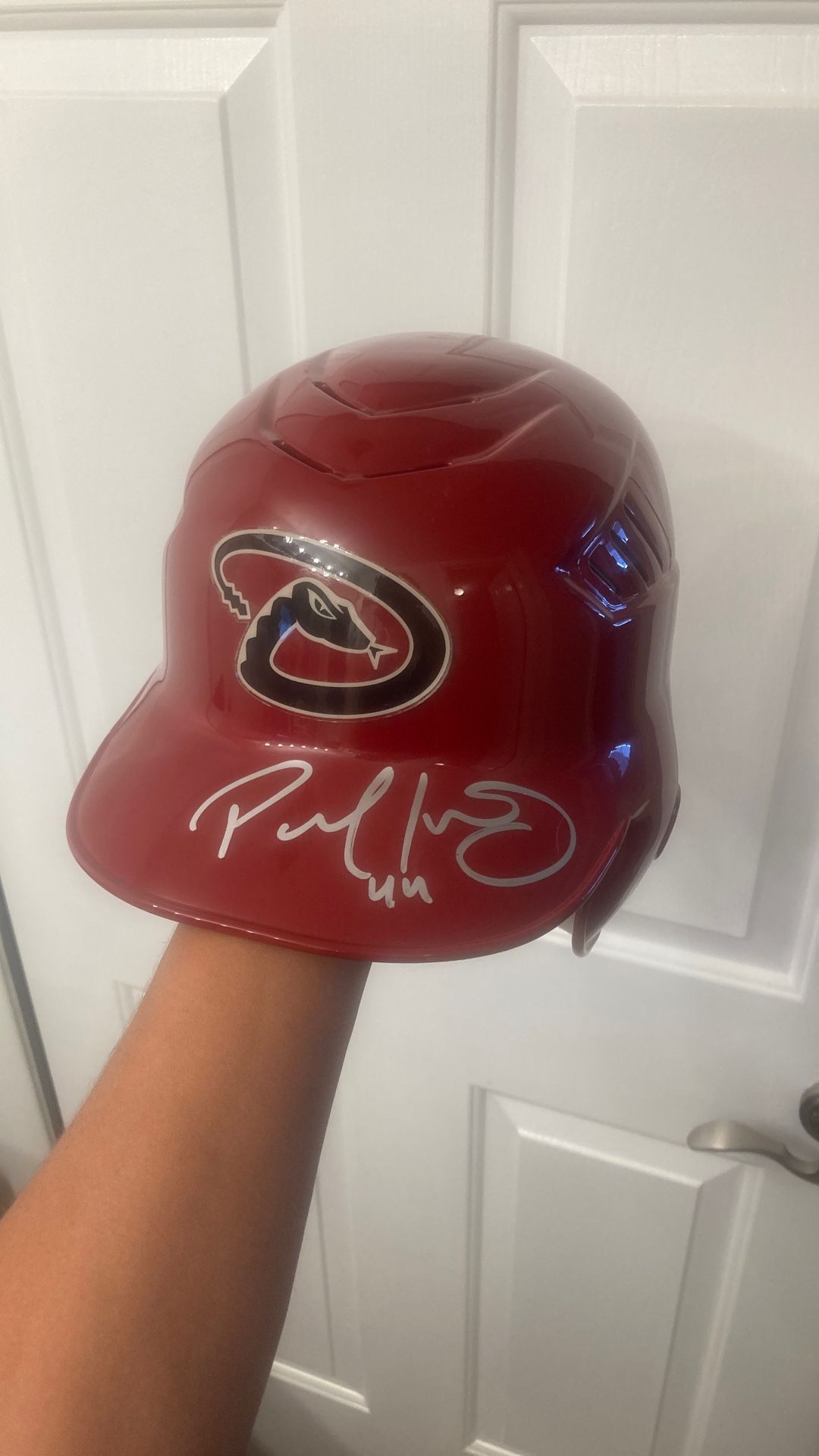 Authentic RAWLINGS “On-Field” PAUL GOLDSCHMIDT “Silver Paint Pen” AUTOGRAPH HELMET🔥Dbacks! W/ JSY #! VERY RARE!
