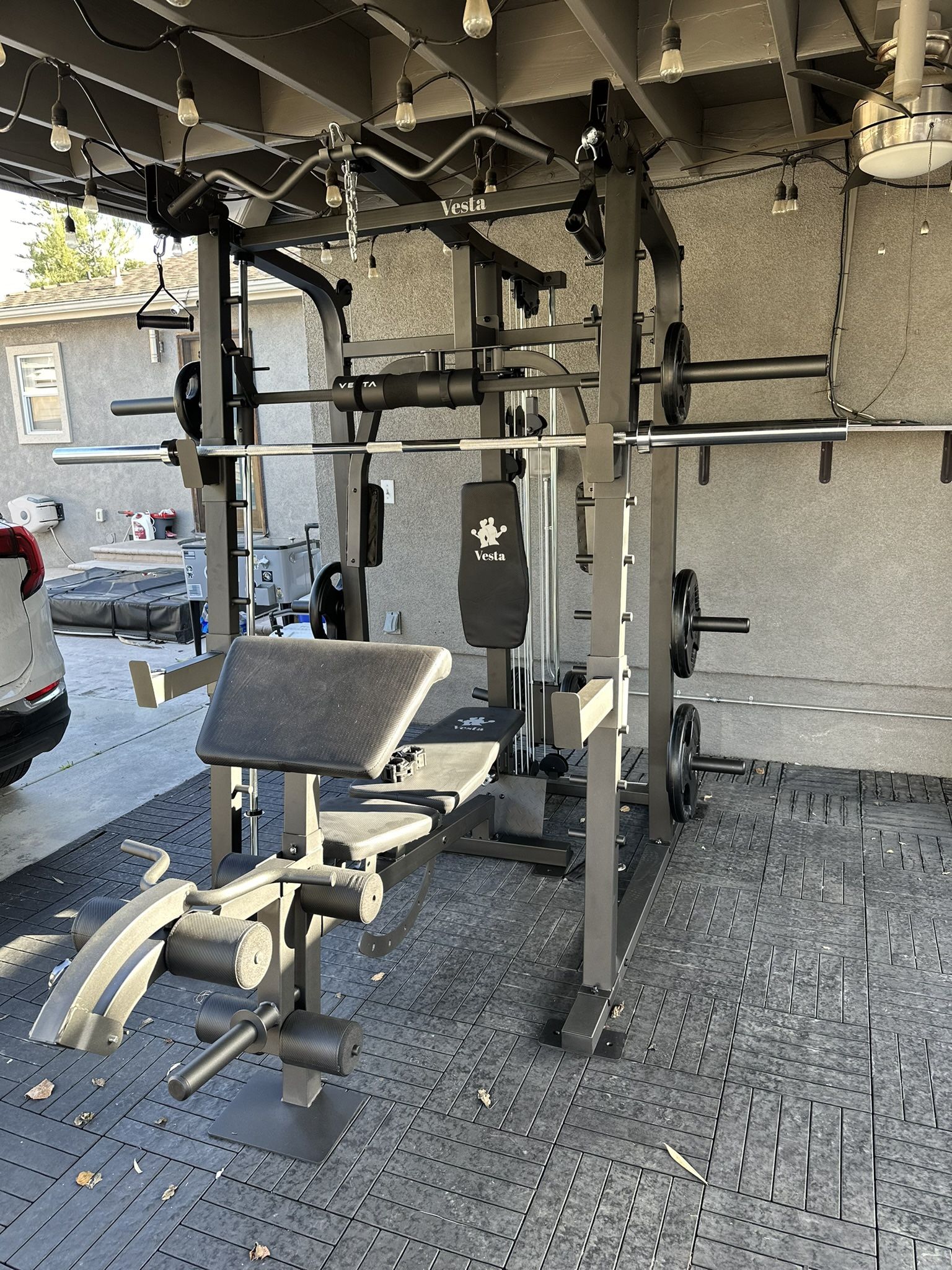 Vesta Fitness Smith Machine 2001 w/Bench Attachment | 230lb Bumpers Weights | 7ft Olympic Bar | Fitness | Gym Equipment | FREE DELIVERY🚚 🏋🏽Smith Machine 2001 Bundle 🏋🏽 Includes Gym Equipment w/Weights! Let Me Help You Create Your Home Gym! New In Box! FREE DELIVERY/INSTALLATION AT FULL PRICE!Click Profile For More Gym Listings! Only Account! Cash / Venmo / Credit Cards / Finance Available! WARRANTY INCLUDED The Vesta Multi-function Smith Machine SM2001 is equipped with different strength machines and exercise station to bring the full gym experience to your home gym. It is designed to have a variety of exercises within one compact design The Ultimate ALL-IN-ONE Machine: Smith Machine Squat Rack Functional Trainer Lat Pulldown Weight Bar Preacher Curl/Leg Lever Bench Press Butterfly Arm Dimension for SM2001 Machine: 84“H x 74“L x 83"W Dimension for FID Bench: 36"H x 73"L x 19"H Upgrades or Add Ons •Free Switch to 245lbs Cast Iron plates 45s/35s/25s/10s/5s/2.5s •$40 3ft by 3ft Rubber Mats •$90 4ft 20lbs Curl OLYMPIC WEIGHTS GYM EQUIPMENT OLYMPIC STANDARD WEIGHT SLED PUSH SLED WEIGHTS WEIGHT PESAS SQUAT RACK POWER CAGE SMITH MACHINE BENCH PRESS INCLINE DECLINE BARBELL BAR HEX BAR BUMPER PLATES ADJUSTABLE BENCH FLAT BENCH BENCH DUMBBELLS DUMBELL ADJUSTABLE DUMBBELLS KETTLE BELLS DIP STATION PULL UPS PULL DOWN BATTLE ROPE BOWFLEX POWERTEC POWERBLOCKS HOIST BODY SOLID ROGUE FITNESS EXERCISE