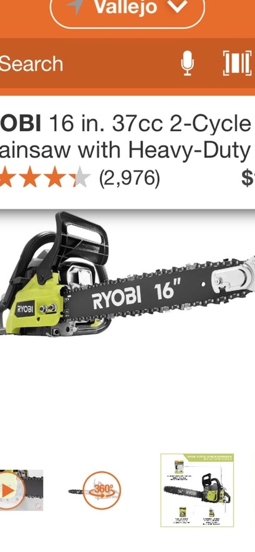 RYOBI 16 INCHES CHAINSAW GAS 37 CC WITH HEAVY DUTY CASE BRAND NEW