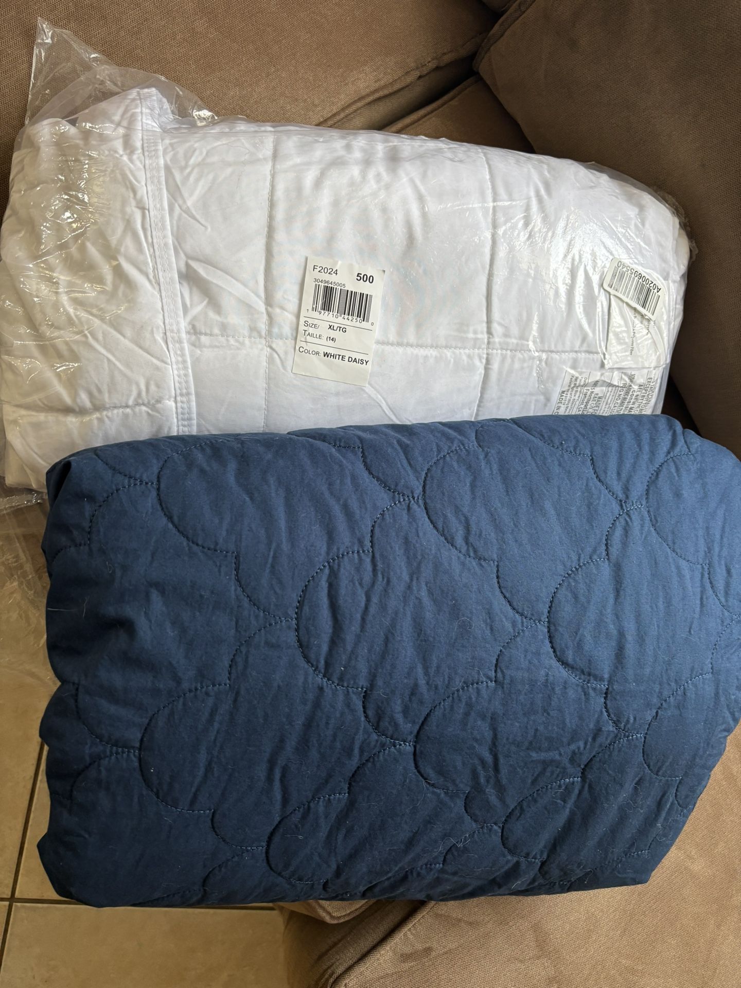 Weighted blanket with removable cover for easy washing. Navy blue. Like new. 60” X 70”. 8 lbs.