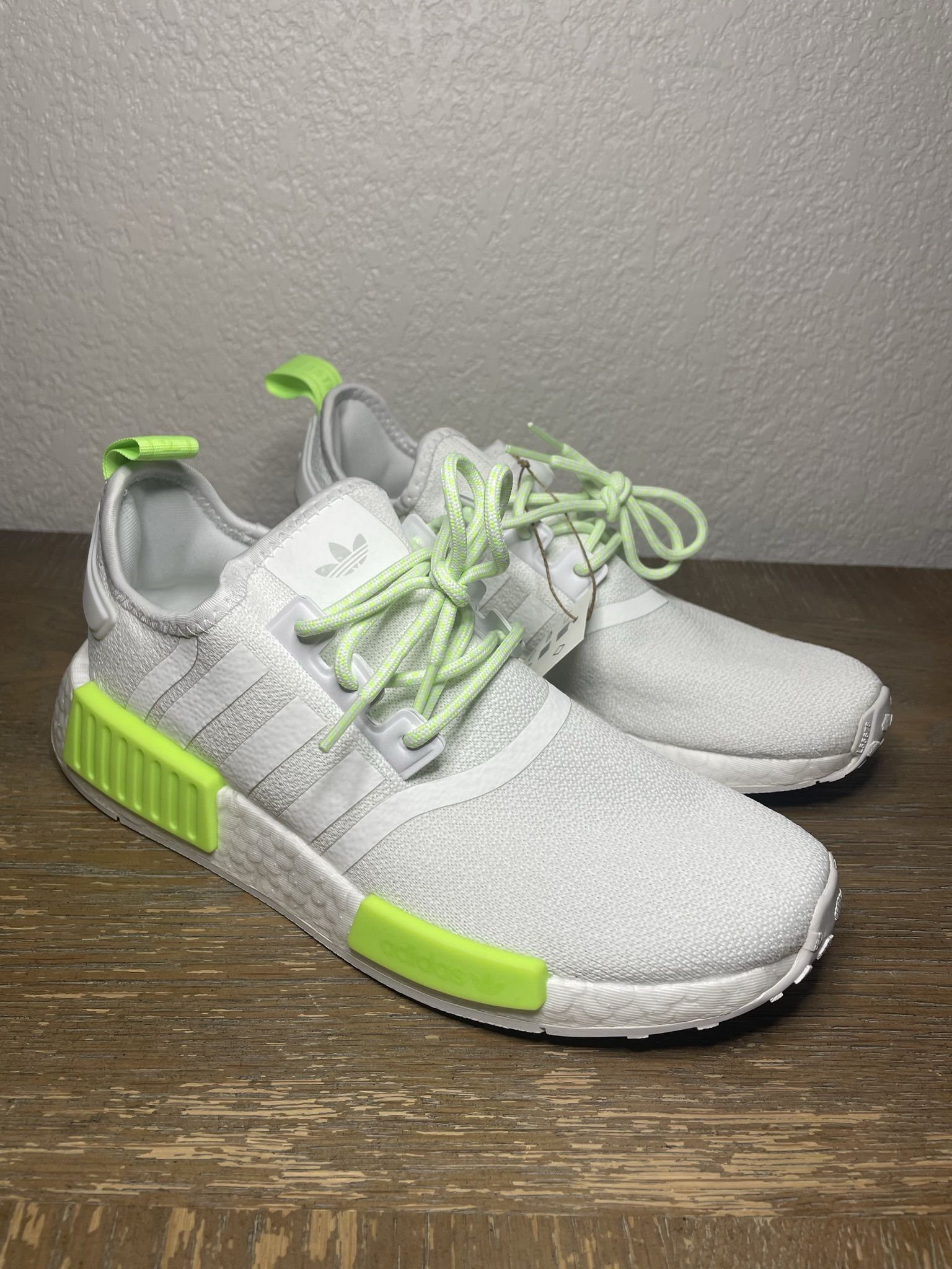 Like new with half box no lid Adidas nmd r1 shoes Size youth 7 White and green