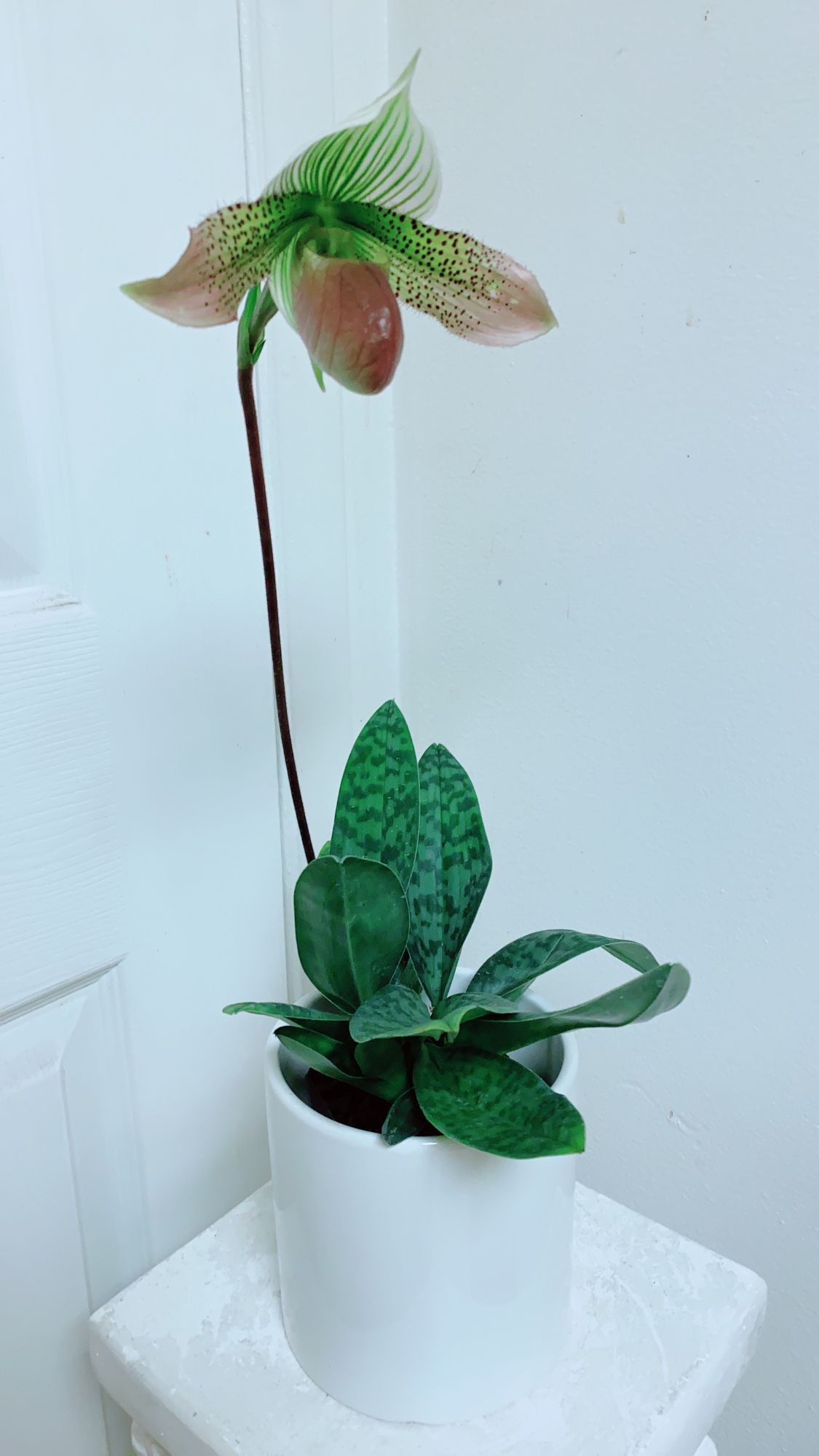 Paphiopedilum Orchid / Lovely Lady Slipper Orchid With Ceramic Pot