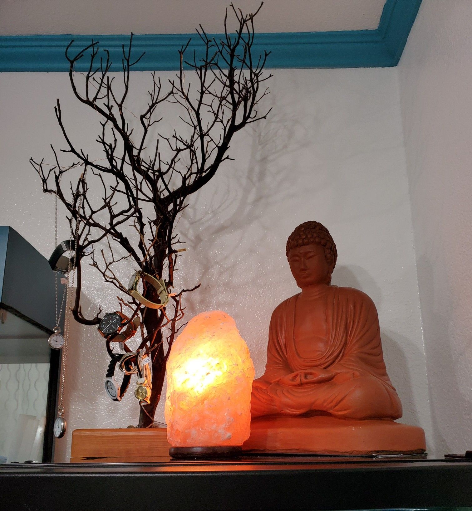 Lamp in pic is NOT for sale as this is ours. We have Small Himalayan rock salt lamps for sale that measure 7 inch tall. Brand new in box with wood stand and 2 incandescent light bulbs. $10 for 1 SMALL Salt Lamp. GREAT DEAL