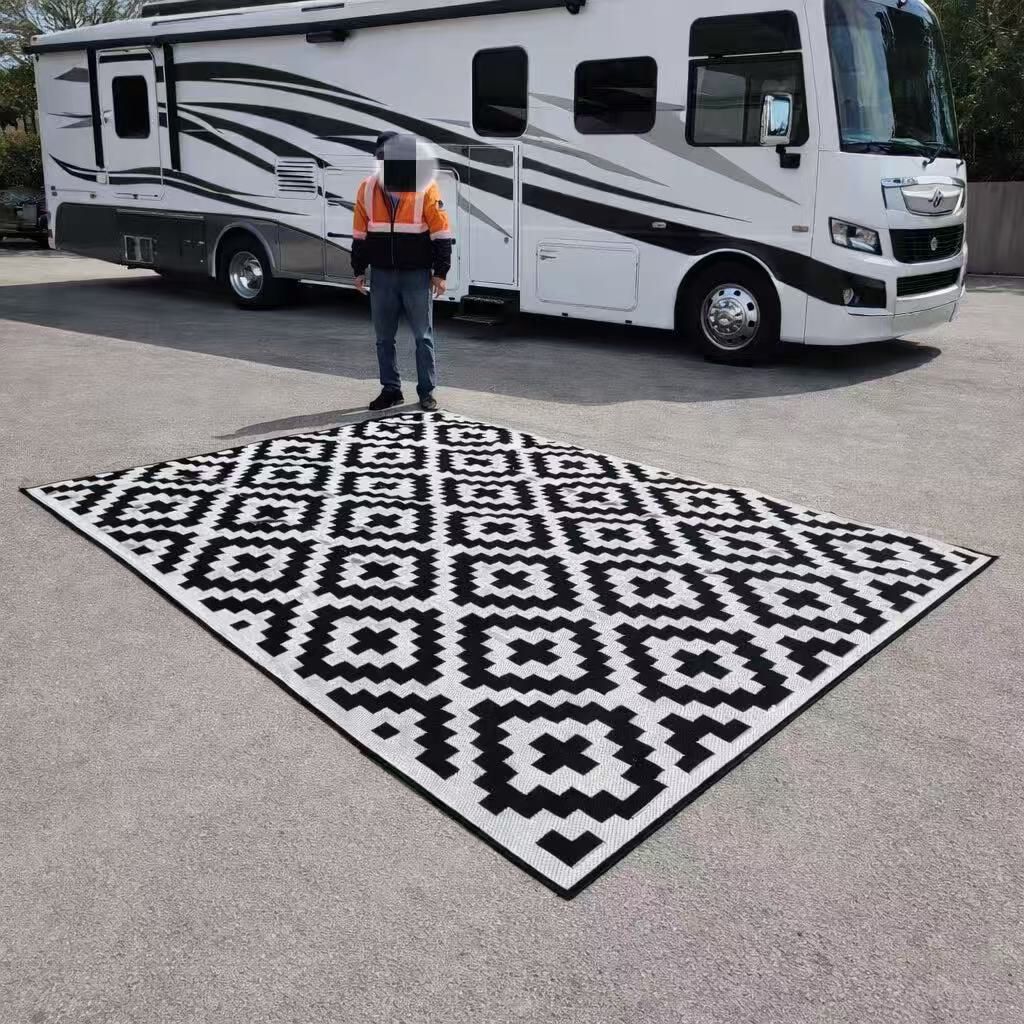 NEW 9x12 Feet XL Size Waterproof Camping Patio Deck Floor Mat RV Beach Park Carpet Area Rug Foldable With Carrying Bag