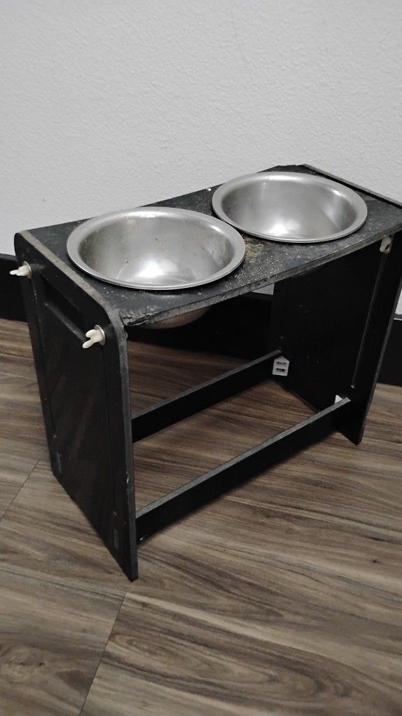 Large Tall Elevated Feeder for Pets in Mango Wood with 2 Bowls