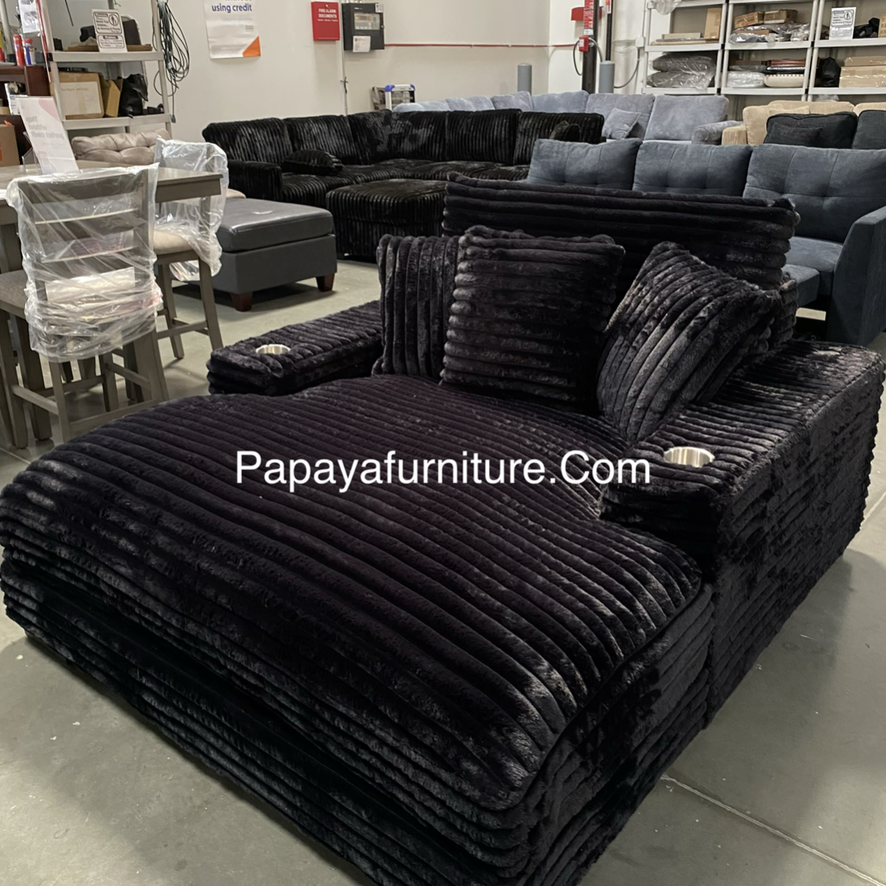 Lux Fur Comfy Chaise Lounge with Cupholders & USB ports, Lounge Single Sofa, Extra Plush Chair 58”x 67” x 35” H Financing Available with Snap or ACIMA