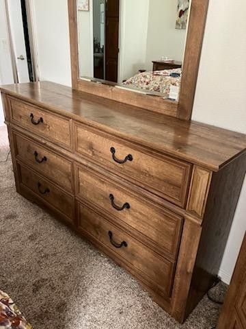 I'm selling as a set only. The set includes: • One dresser with a mirror included • One dresser chest • Two night stands ( The last picture in this listing is to show you what it looks like all together - just minus the bed frame as the bed frame is not for sale ) ( The bedroom furniture is all a matching set ) Ashley Furniture Brand. All in VERY EXCELLENT Condition! $650. 00 ( for all 4 pieces plus the mirror ) Serious Buyers Only, Please. Communication will be done through messaging here on Offer Up. Pick up days: Monday through Friday only between the hours of 9:00am to 3:00pm only. Cash transaction only. Thank you for looking!