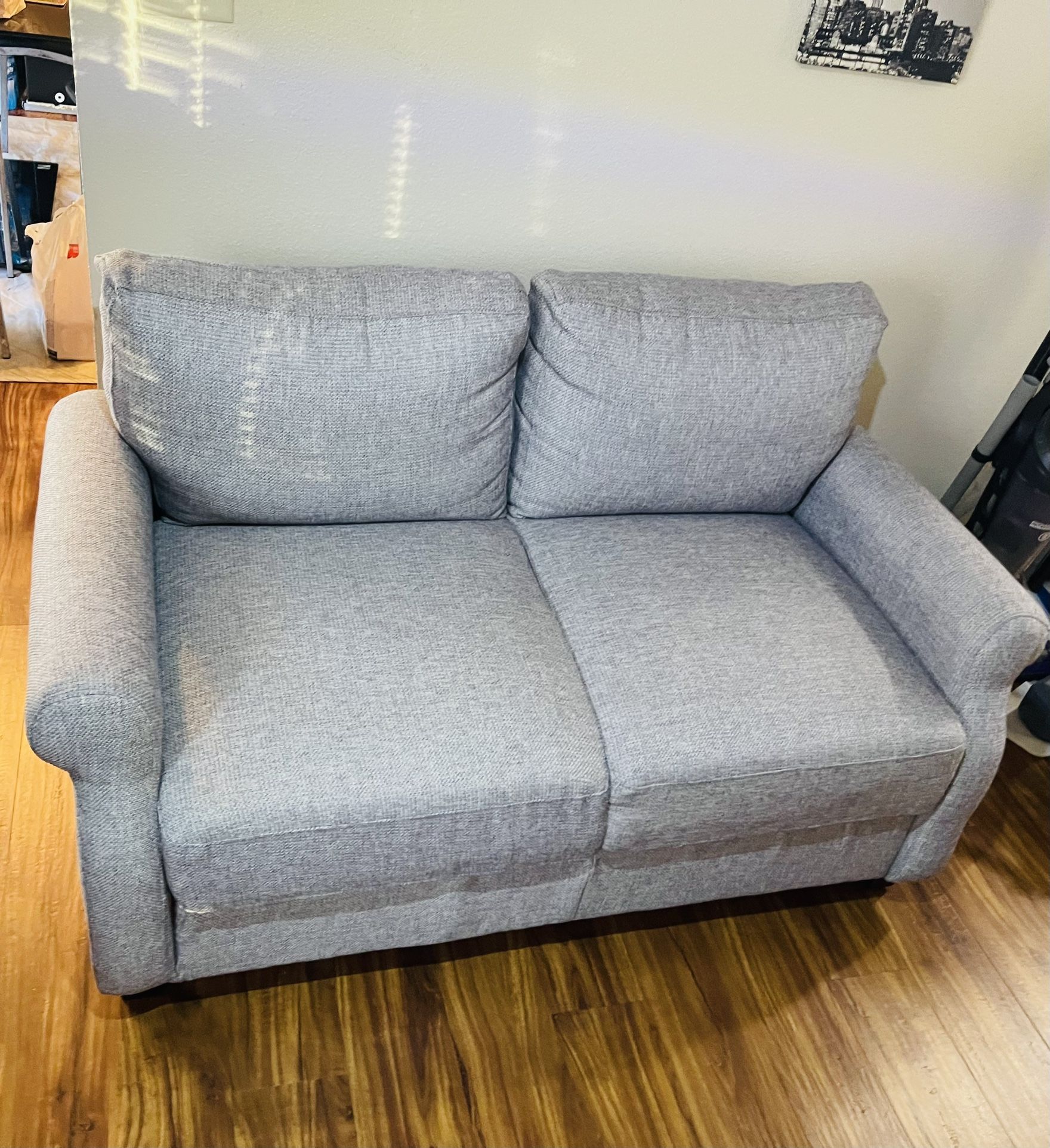 Single sofa with two seats… It is still in good condition, and was barely used… No Stain No Rips and it is made out of solid wood. Delivery available for some fee. Height - 2ft 10inches Length - 4ft
