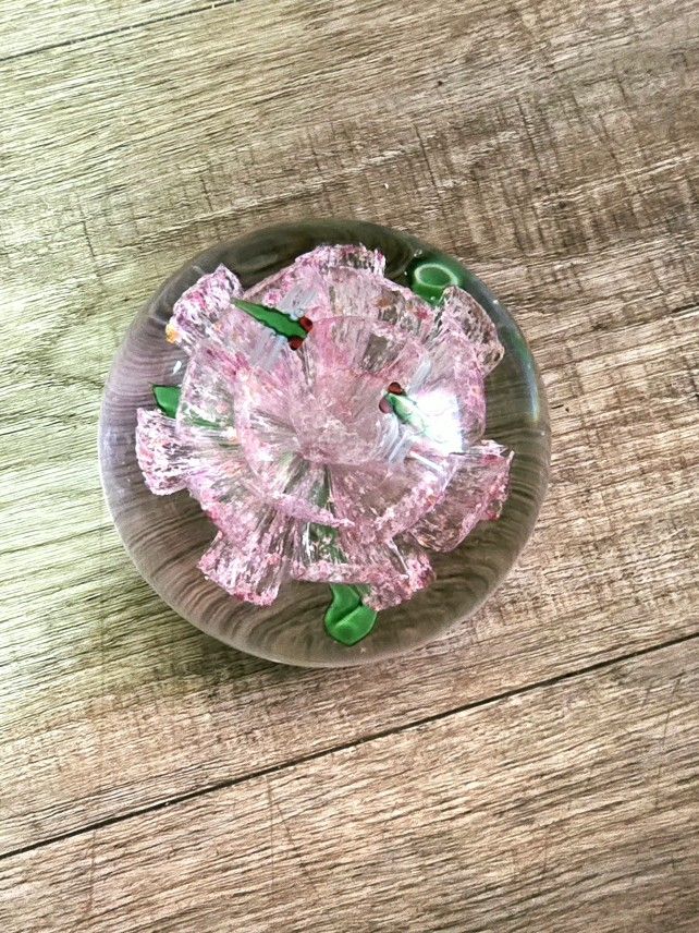 I am selling a Beautiful Studio Artglass Paperweight Flower & Dragonflies measures 2."H x 4"L. Great design!. From a smoke-free home. I am doing porch pick up only at this time.