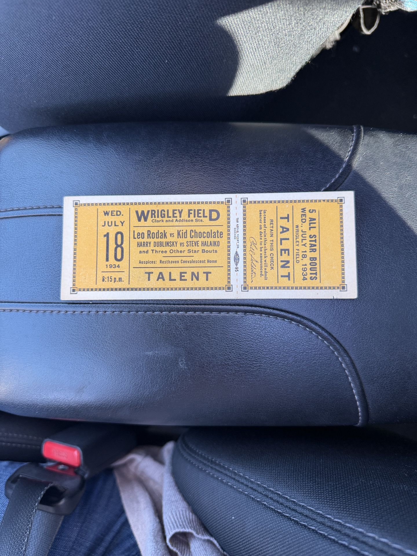 1934 Kid Chocolate vs. Leo Rodak Full Fight Ticket, Wrigley Field proof