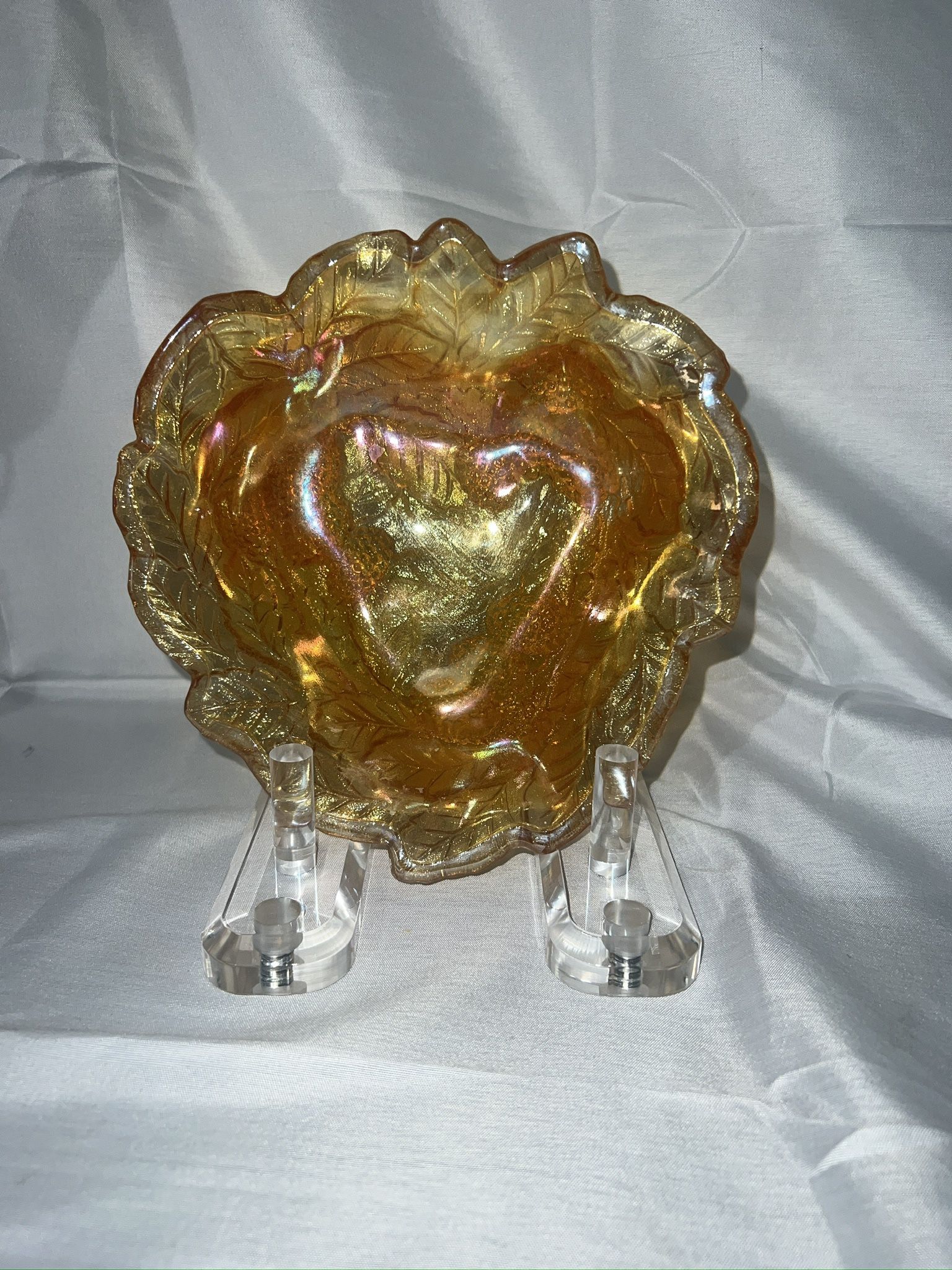 Indiana Glass Loganberry Marigold Iridescent Amber Carnival Glass Candy Dish