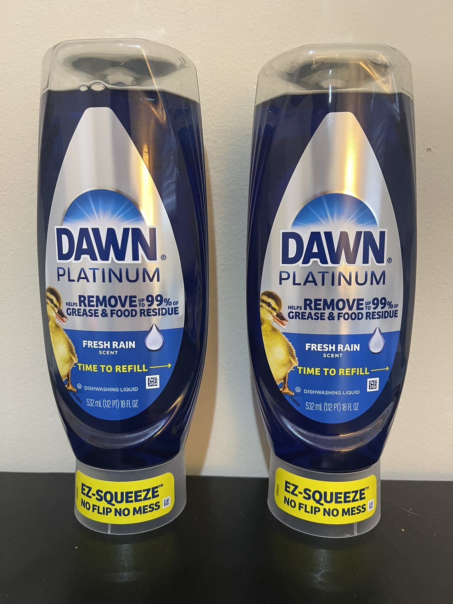 2pack Dawn Platinum EZ-Squeeze Dish Soap Liquid, Dishwashing Liquid, Grease Removal, Fresh Rain, 18oz New 2pack total $7