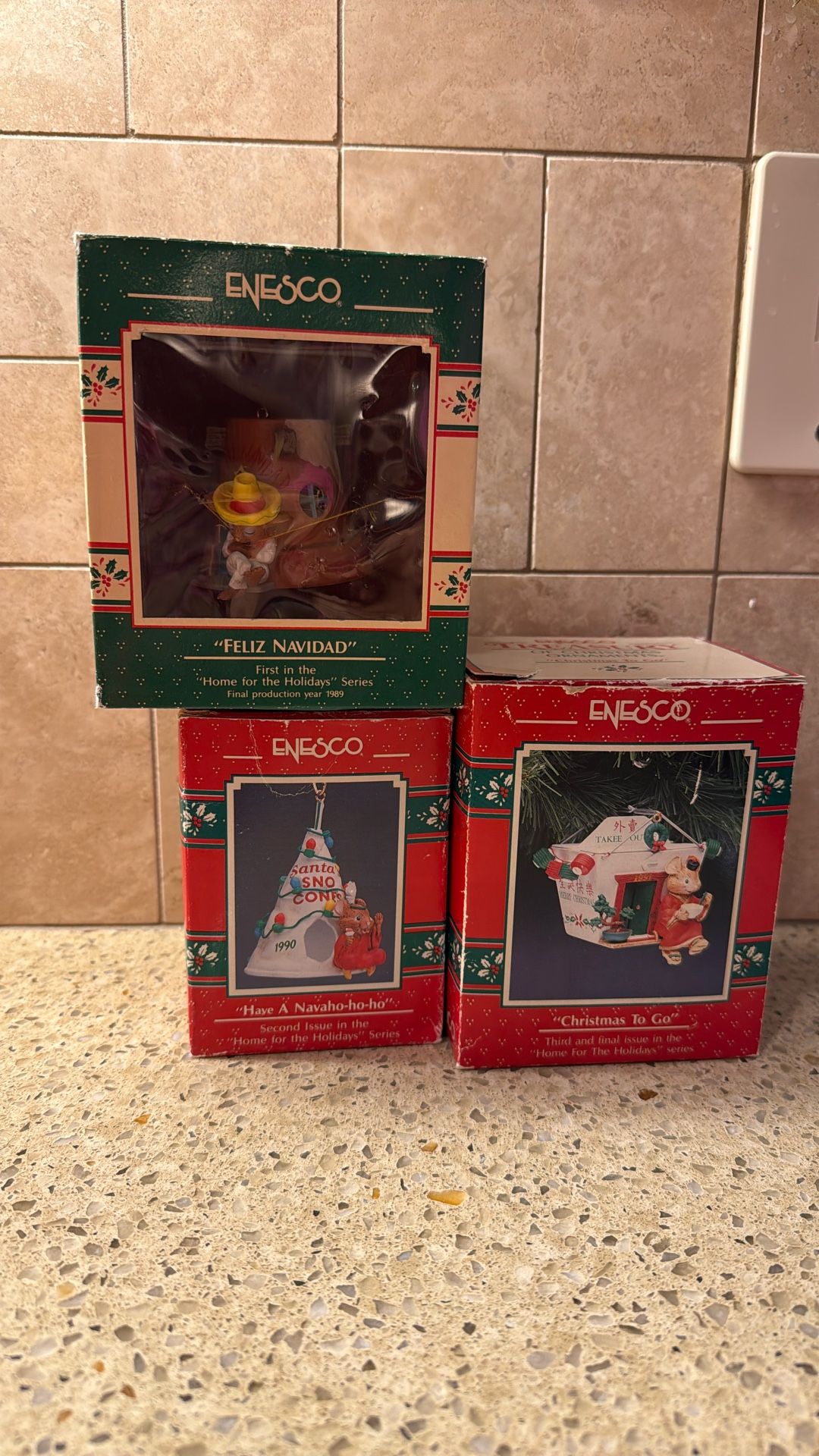 Complete Set Vintage Enesco Home For The Holidays Ornaments 1(contact info removed)