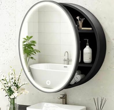 New 24 Inch Round Metal Medicine Cabinet with Lights, LED Medicine Cabinet with Defogger for Bathroo