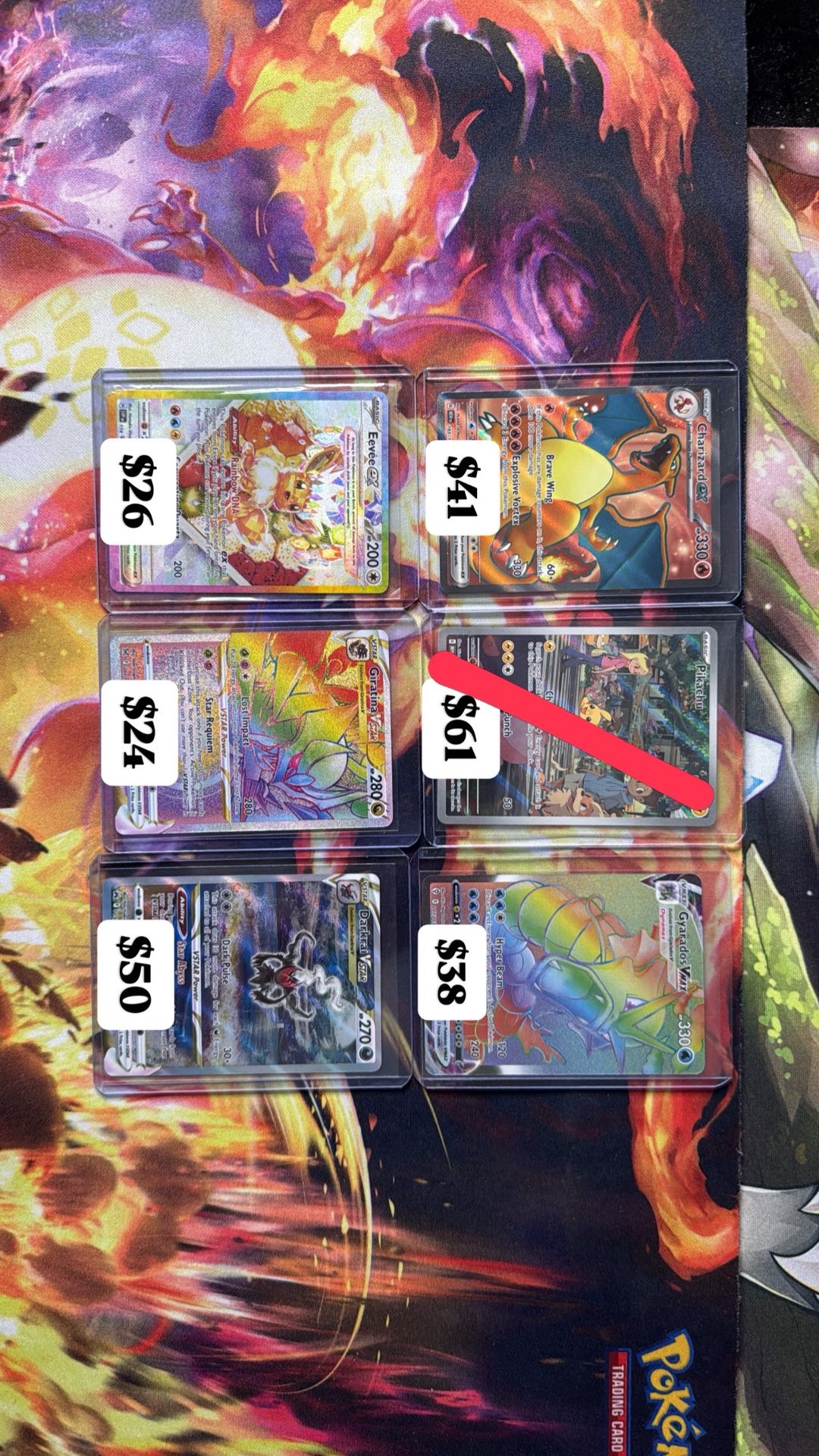 All near mint Follow me @763cardroom Open to trades Pokemon Pokmeon lot Gyarados Blastoise Mew Cleffa Vamporeon Keldeo Jolteon Samurott Yanmega Darkrai Eevee Giratina Pokemon battle Pokemon cards Sword and Shield Scarlet and Violet Lost Origins Evolving Skies Fusion Strike Chilling Reign Astral Radiance Silver Tempest Obsidian Flames Paldea Evolved Paradox Rift Crown Zenith Paldean Fates Temporal Forces Shrouded Fable Stellar Crown Surging Sparks Prismatic Evolutions Black bolt White flare Destined Rival 151 Mega evolution Charizard