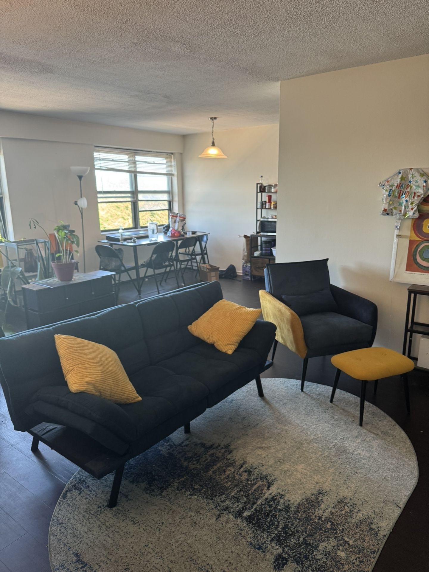 Blue Manstays Sofa Bed Couch With Yellow Throw Pillows