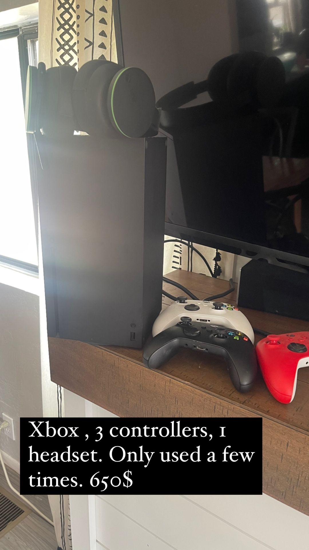 It’s only been used a few times. It comes with 3 controllers, 1 headset.