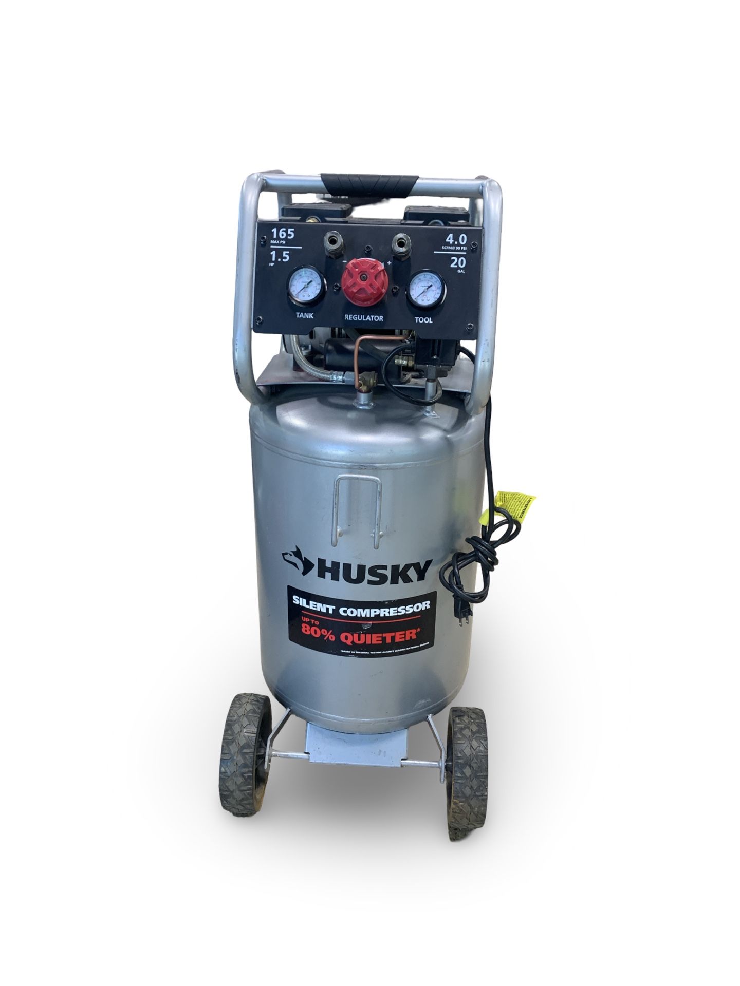 Unleash pure power with this pre-owned Husky Electric Tools Compressor! With a hefty 20 gallon capacity, this trust tool effortlessly combines style, portability, and function. Mounted on wheels and featuring (contact info removed) SN: (contact info removed), it’s well-seasoned but still robust. Explore the potency of this well-loved beast, ID:9311EGG