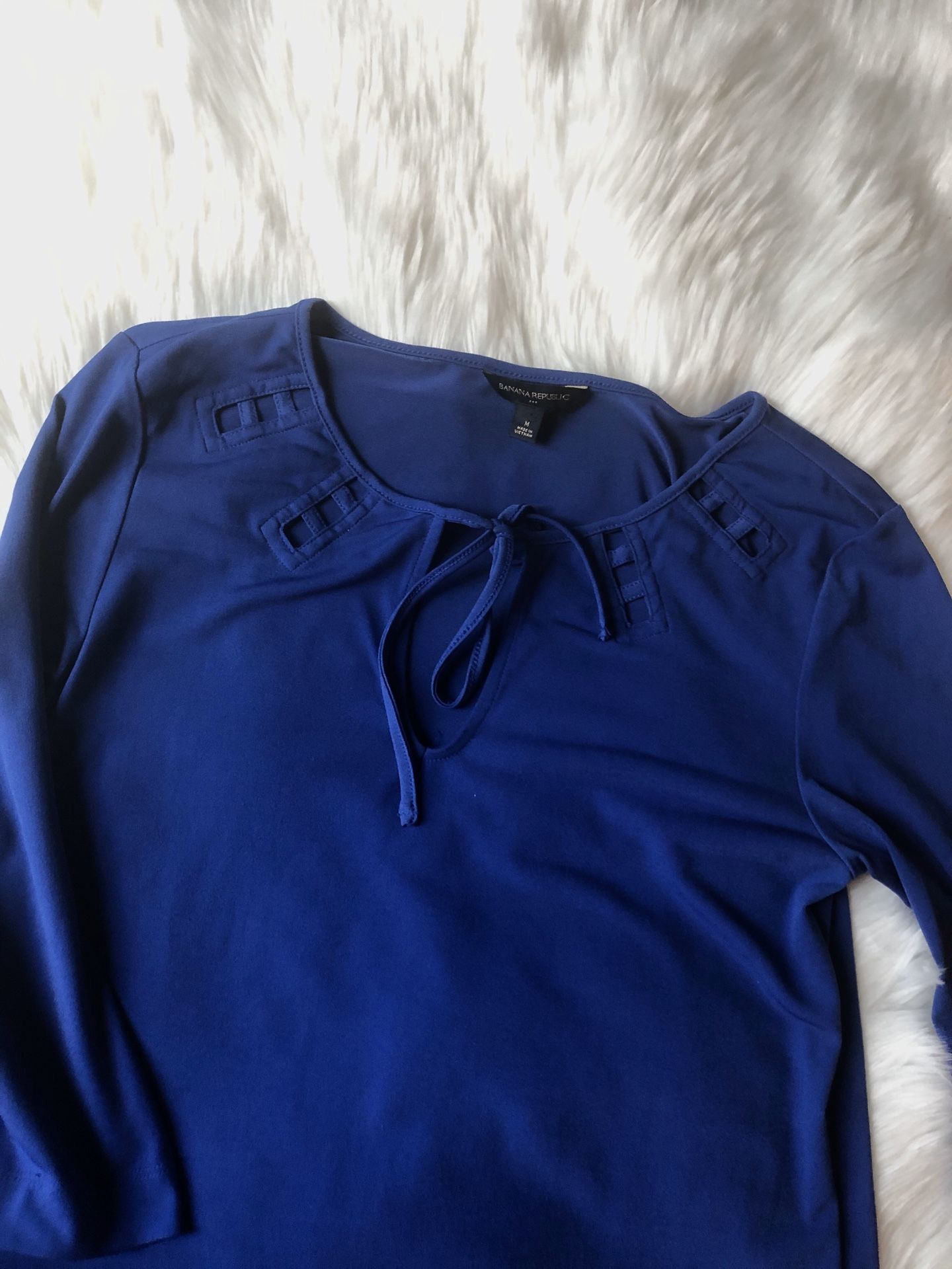 Banana Republic shift dress! Cobalt blue with cut out pattern around neckline. Ties in front at the top. 3/4 sleeves. Size Medium. Retail $88. Asking $10.