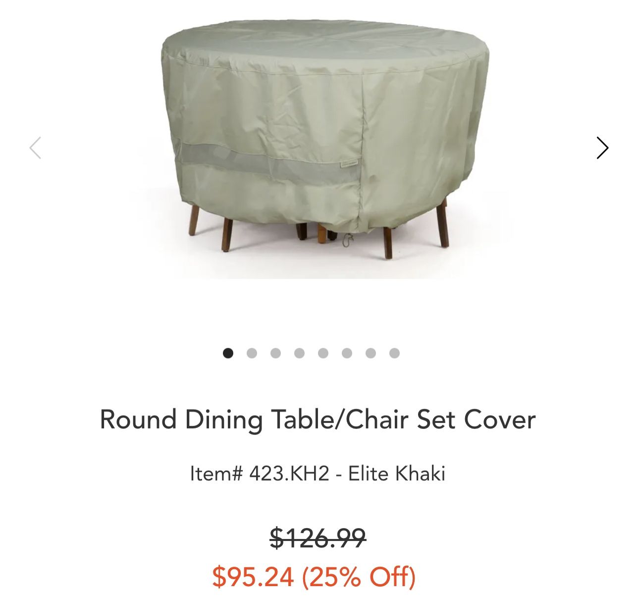 Neutral/beige cover for round outdoor dining furniture. It’s made from sturdy waterproof canvas like material, and has ties on the bottom to secure at the base and vents to ensure airflow. It has a couple tiny rips that are easily repairable, but they don’t affect functionality. It’s freshly laundered. $20 OBO