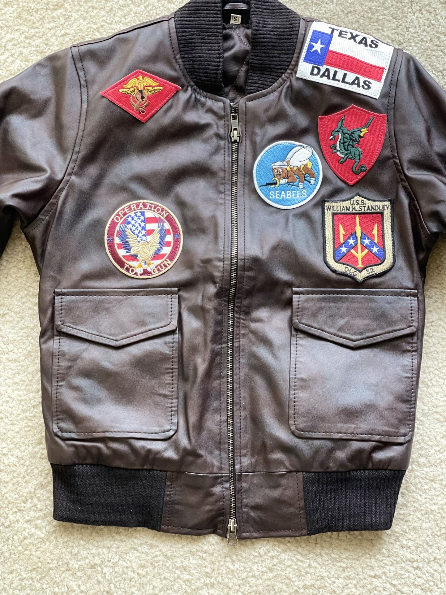 Inspired by the jacket worn by Tom Cruise as Pete Marverick in movie Top Gun