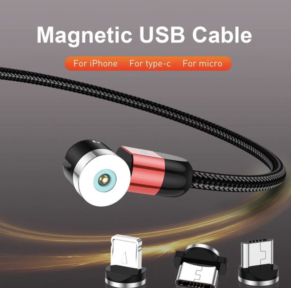 Uslion 2M (6ft) new 3 in 1 540 degree magnetic cable (flexible) for iOS (iPhone), Micro (Androids), and type C (phones, speakers, keyboard,etc). With built in LED light. They are brand new in package, never used. Deals available when buying more than 1.