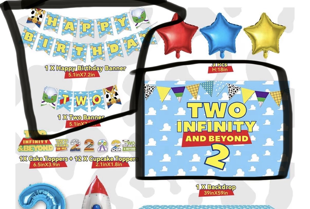 Hello ordered this set from Amazon. I have the Banner and two signs. One sign says “Happy Birthday” the other says “two”