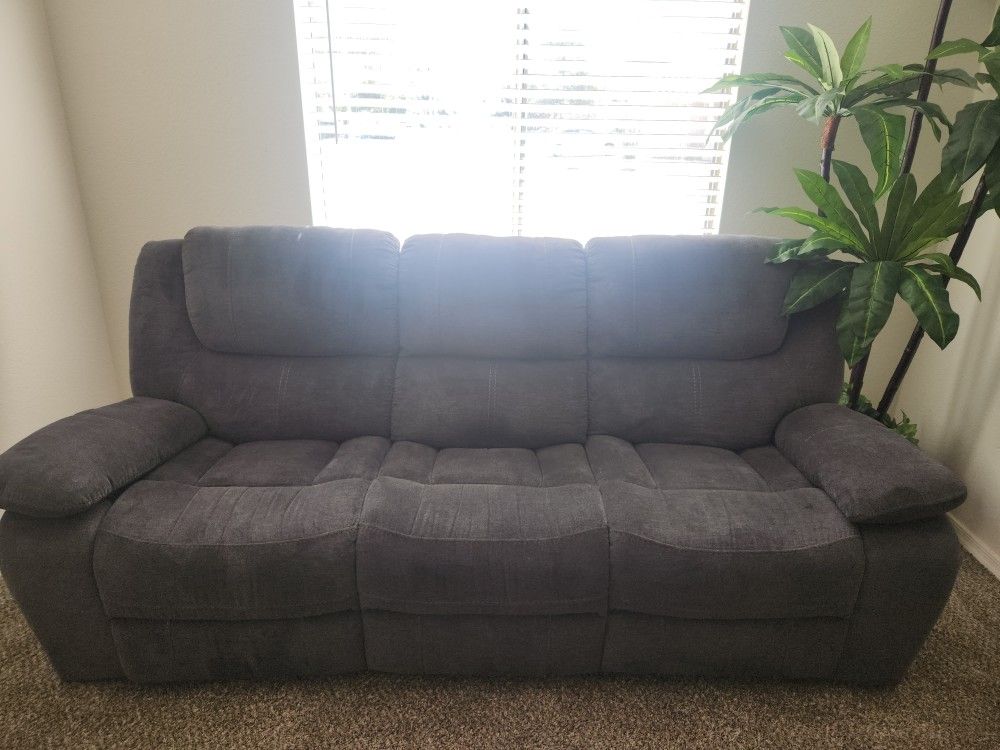 Used blue/gray couch. Sides recline, very comfortable. Can use a little cleaning but it is still in very good condition.