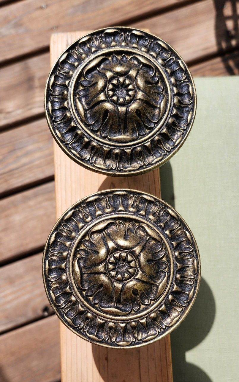 Vintage Pair of Brass Floral Flower Ornate Curtain Tie Backs Marked N983