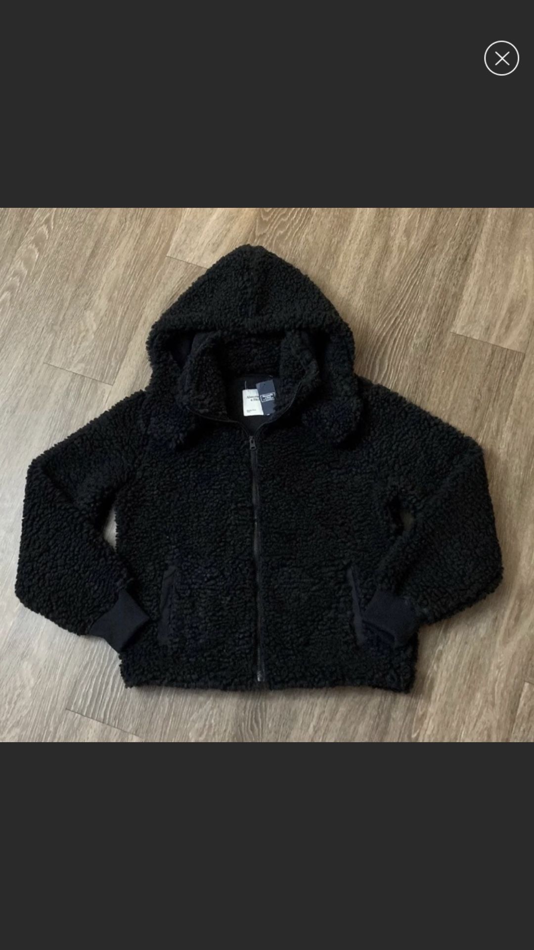 Abercrombie Sherpa Full-Zip Jacket Cozy and comfy full-zip jacket in super soft curly sherpa fabric. Features a removable hood, pockets and oversized snap collar. Color: Black (last 3 photos in cream color with model are for fit reference only) Size: Small Sleeve length: 33.5” Body Length: 24” New with tag Faux Fur:100% Polyester / Back:100% Polyester Machine wash cold separately, gentle cycle, remove promptly Only non-chlorine bleach Tumble dry low, remove promptly Do not iron Do not dry clean