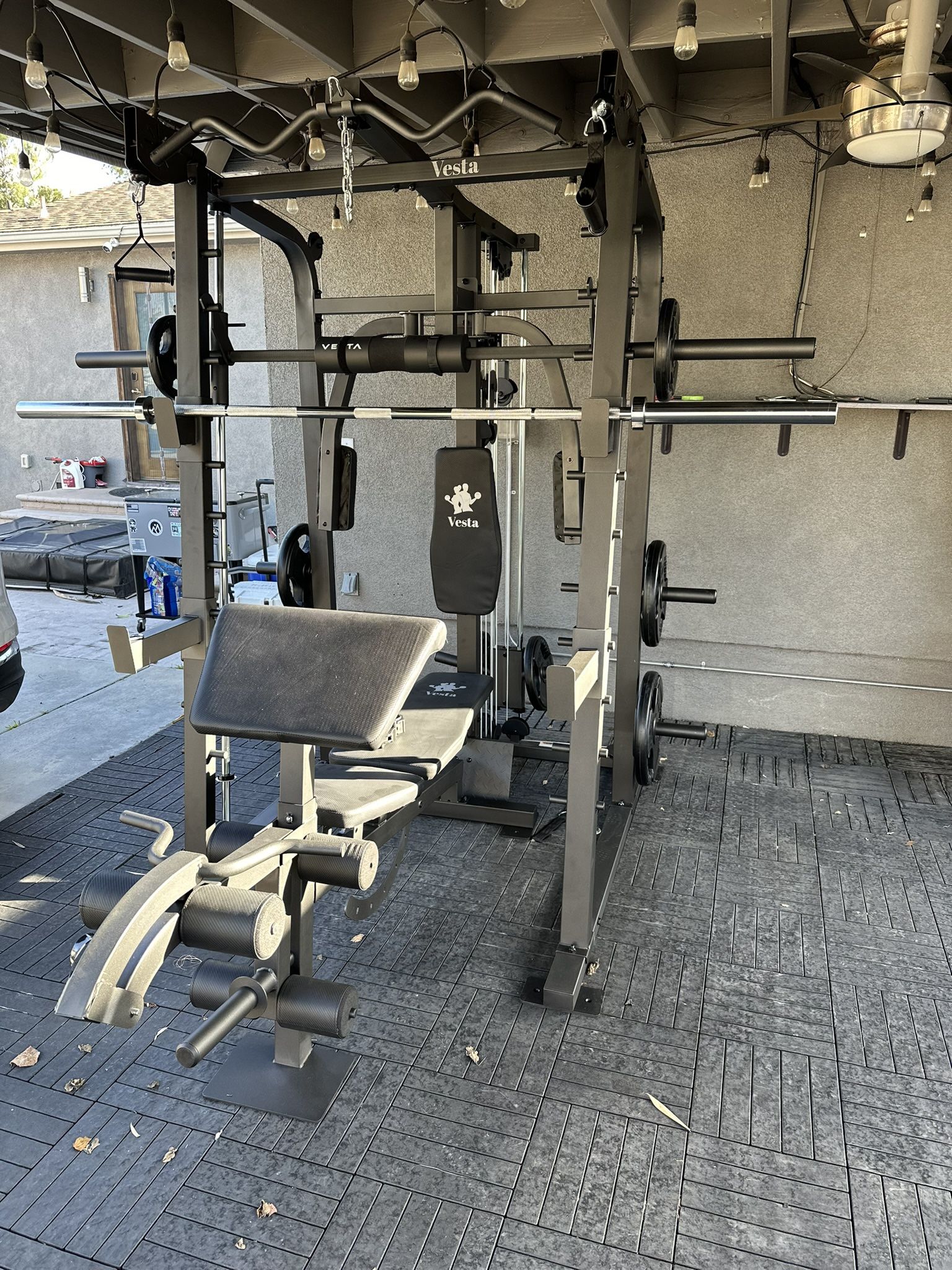 Vesta Fitness Smith Machine 2001 w/Bench Attachment | 230lb Bumpers Weights | 7ft Olympic Bar | Fitness | Gym Equipment | FREE DELIVERY🚚 🏋🏽Smith Machine 2001 Bundle 🏋🏽 Includes Gym Equipment w/Weights! Let Me Help You Create Your Home Gym! New In Box! FREE DELIVERY/INSTALLATION AT FULL PRICE!Click Profile For More Gym Listings! Only Account! Cash / Venmo / Credit Cards / Finance Available! WARRANTY INCLUDED The Vesta Multi-function Smith Machine SM2001 is equipped with different strength machines and exercise station to bring the full gym experience to your home gym. It is designed to have a variety of exercises within one compact design The Ultimate ALL-IN-ONE Machine: Smith Machine Squat Rack Functional Trainer Lat Pulldown Weight Bar Preacher Curl/Leg Lever Bench Press Butterfly Arm Dimension for SM2001 Machine: 84“H x 74“L x 83"W Dimension for FID Bench: 36"H x 73"L x 19"H Upgrades or Add Ons •Free Switch to 245lbs Cast Iron plates 45s/35s/25s/10s/5s/2.5s •$40 3ft by 3ft Rubber Mats •$90 4ft 20lbs Curl OLYMPIC WEIGHTS GYM EQUIPMENT OLYMPIC STANDARD WEIGHT SLED PUSH SLED WEIGHTS WEIGHT PESAS SQUAT RACK POWER CAGE SMITH MACHINE BENCH PRESS INCLINE DECLINE BARBELL BAR HEX BAR BUMPER PLATES ADJUSTABLE BENCH FLAT BENCH BENCH DUMBBELLS DUMBELL ADJUSTABLE DUMBBELLS KETTLE BELLS DIP STATION PULL UPS PULL DOWN BATTLE ROPE BOWFLEX POWERTEC POWERBLOCKS HOIST BODY SOLID ROGUE FITNESS EXERCISE