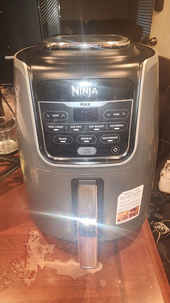NINJA AF161, 5.5-Quart Max Crisp Technology delivers 450 degrees of superheated air to cook foods up to 30% faster (versus Ninja AF100) for hotter, crispier results with little to no oil for guilt free fried favorites. XL 5. 5-qt ceramic-coated nonstick basket and crisper plate fit 3 lbs of French fries or chicken wings. Functions include: Max Crisp, Air Fry, Air Roast, Air Broil, Bake, Reheat, Dehydrate Ceramic-coated basket: Nonstick and dishwasher safe Wide temperature range: 105-450 degrees