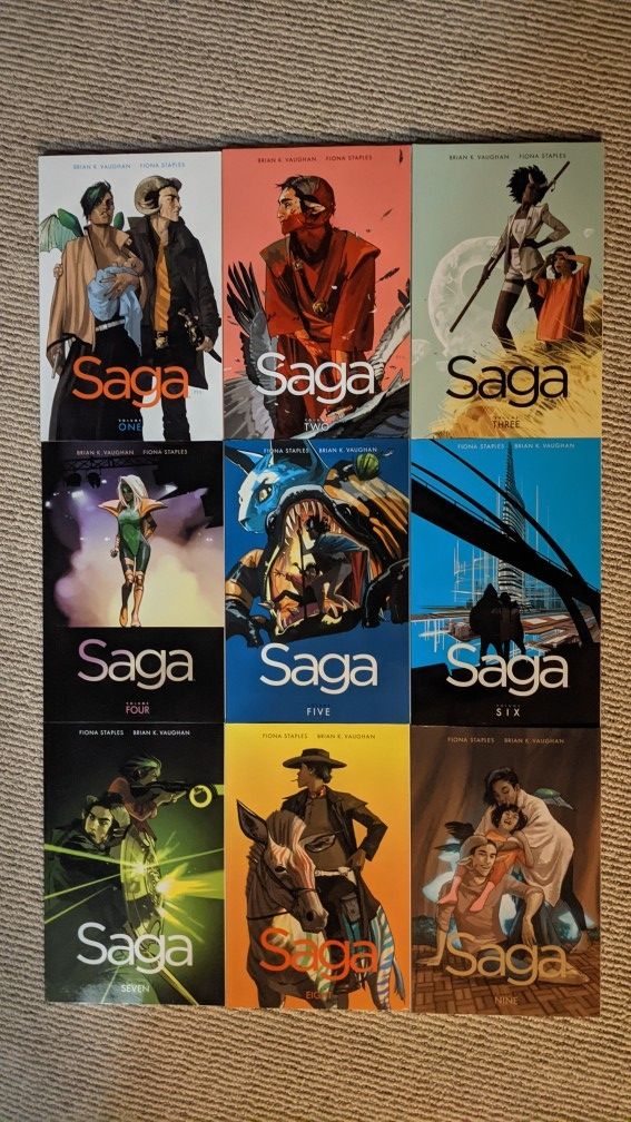 Complete Series of Saga Graphic Novels. Read through a single time. Like new.