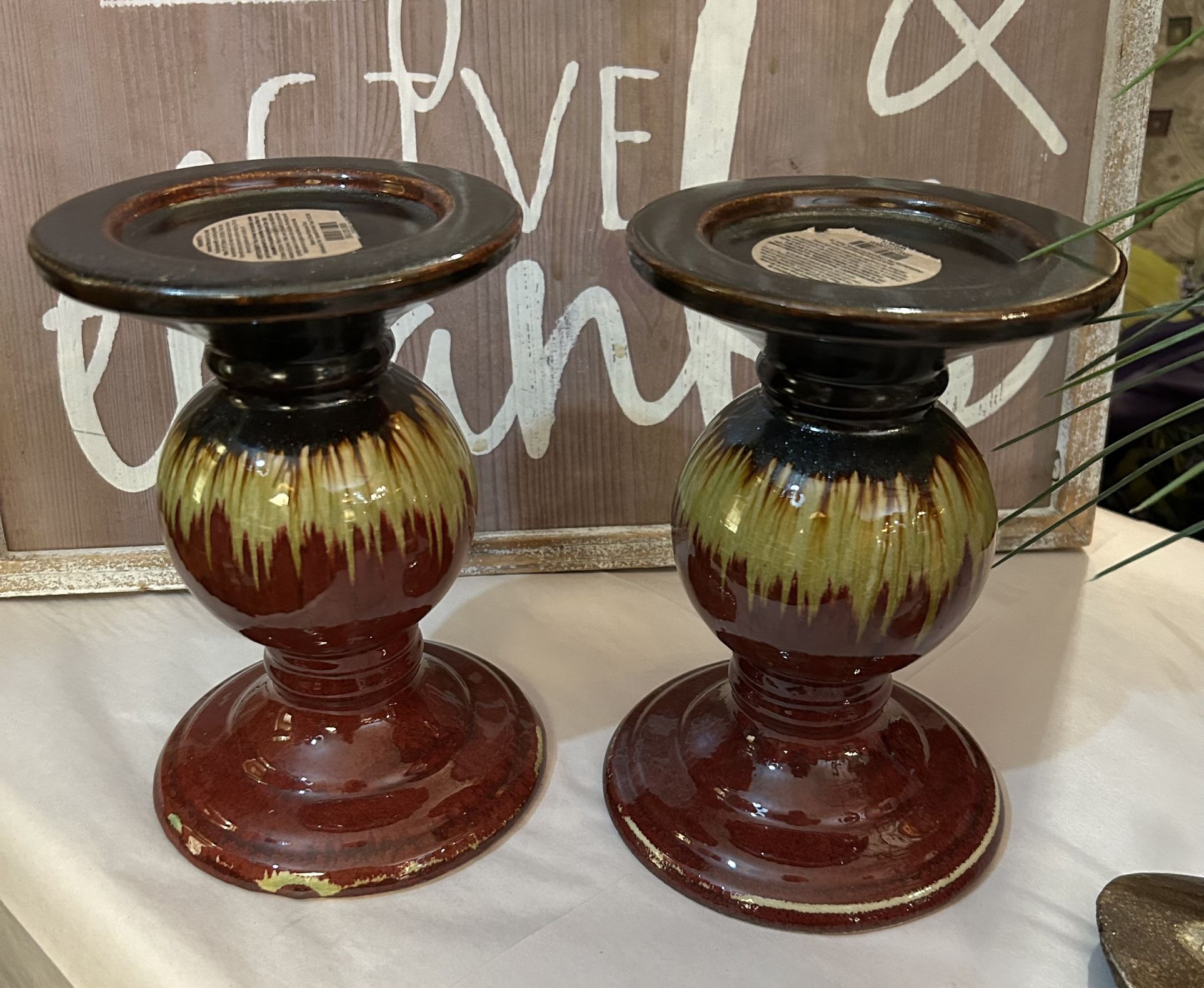 Very nice ceramic candle holders 8 tall. 5. 5 wide and deep High glazed finish