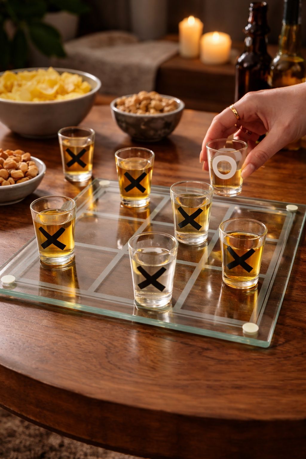 The Jay Companies 1990s 10-Piece Shot Glass Tic-Tac-Toe Game Set, 13.5x13.5”